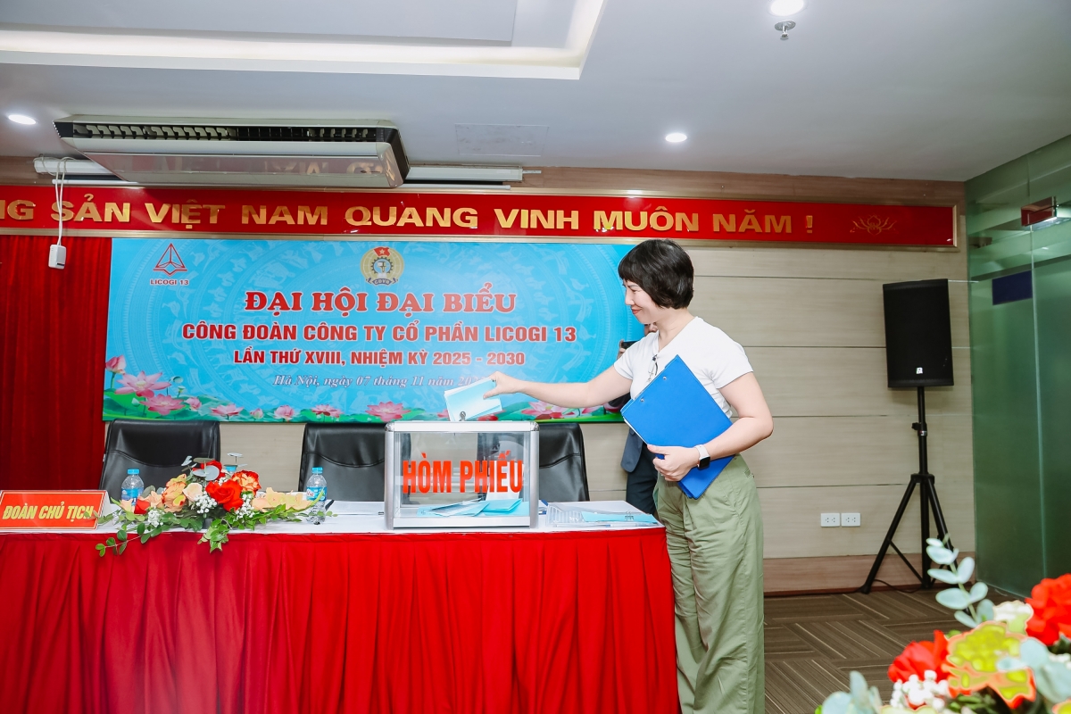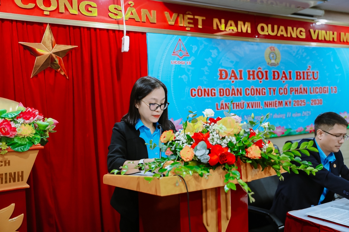 Sau khi thảo luận, Đại hội thống nhất thông qua Nghị quyết Đại hội Đại biểu Công đoàn Công ty Cổ phần LICOGI 13 khóa XVIII, nhiệm kỳ 2025–2030, với các mục tiêu và chỉ tiêu cụ thể: