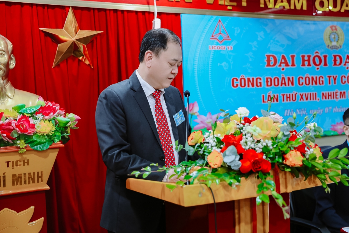 Phát biểu chỉ đạo tại Đại hội, các đồng chí lãnh đạo Công đoàn cấp trên và Đảng ủy Công ty đánh giá cao những kết quả mà Công đoàn LICOGI13 đã đạt được, đồng thời tin tưởng Ban Chấp hành khóa mới sẽ tiếp tục phát huy truyền thống đoàn kết, sáng tạo, xây dựng tổ chức công đoàn vững mạnh, góp phần cùng Công ty hoàn thành thắng lợi nhiệm vụ giai đoạn 2025–2030.